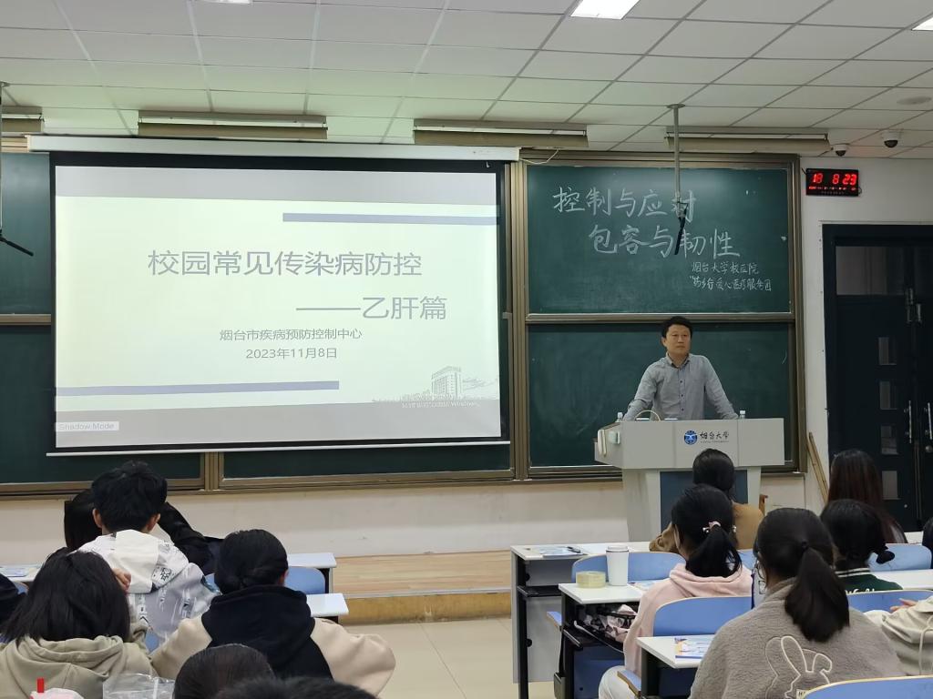 为使学子正确认识乙肝等常见传染病,提高在校大学生对传染病的防控意识,有效预防传染病在校内的传播。11月3日晚,“药乡行”爱心医疗服务团联合新新漫画 校医院于综合楼206开展主题为“控制与应对,包容与韧性”的大学生健康公益大讲堂。新新漫画 校医院副院长王淑珍、办公室主任徐信磊、预防保健科主任张玉琴、医生周丽霞,烟台市疾病预防控制中心免疫预防科科长、副主任医师陈鹏及学生代表参加本次讲座。