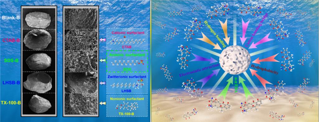 图1水凝胶珠吸附剂形貌调控与四环素吸附机理图